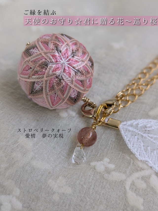 桜のお守り 入学祝い 願い事をサポートするパワーストーンの天使 桜手鞠のストラップ 【天使とお花見】