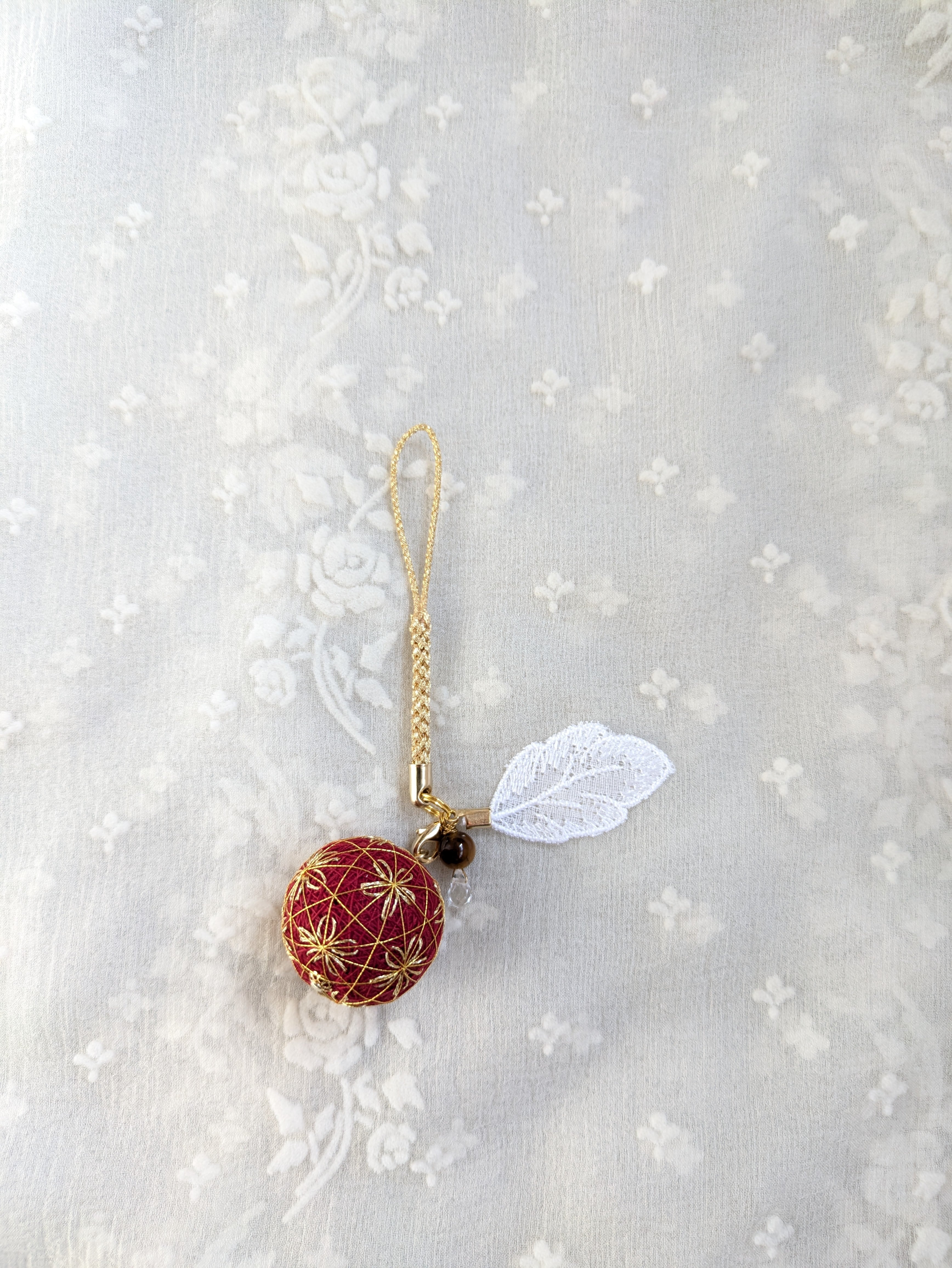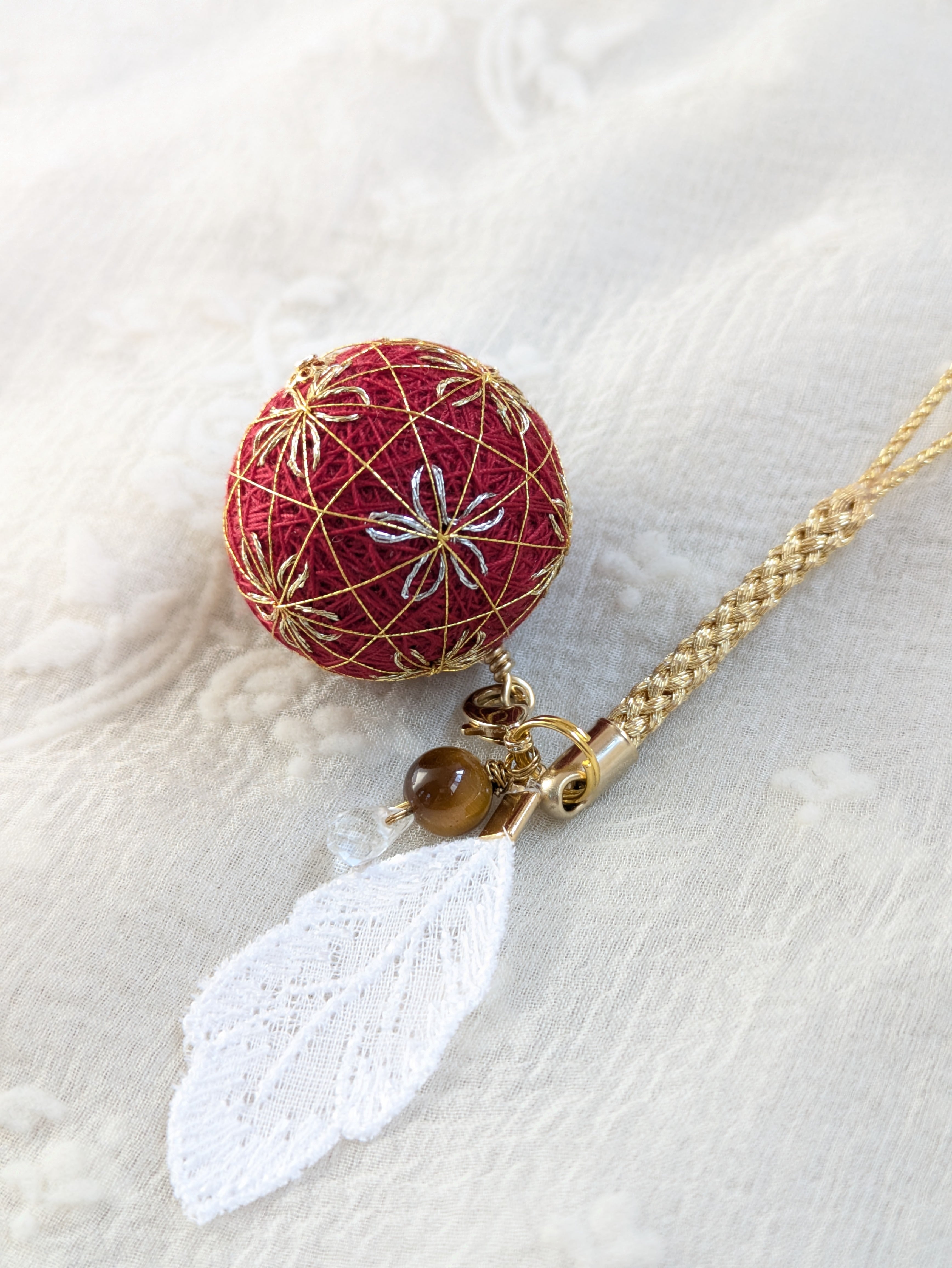花手鞠はカニカンから取り外して、お手持ちのチェーンに通したら、ペンダントトップにもなります。