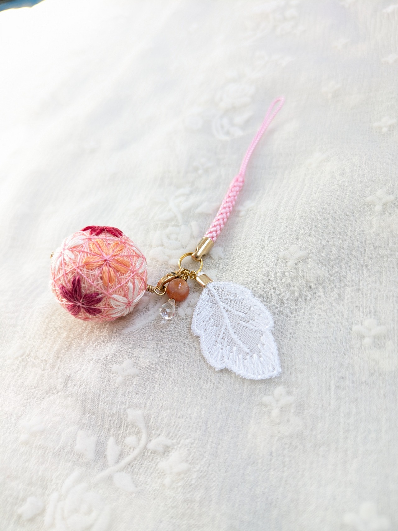 花手鞠はカニカンから取り外して、お手持ちのチェーンに通したら、ペンダントトップにもなります。