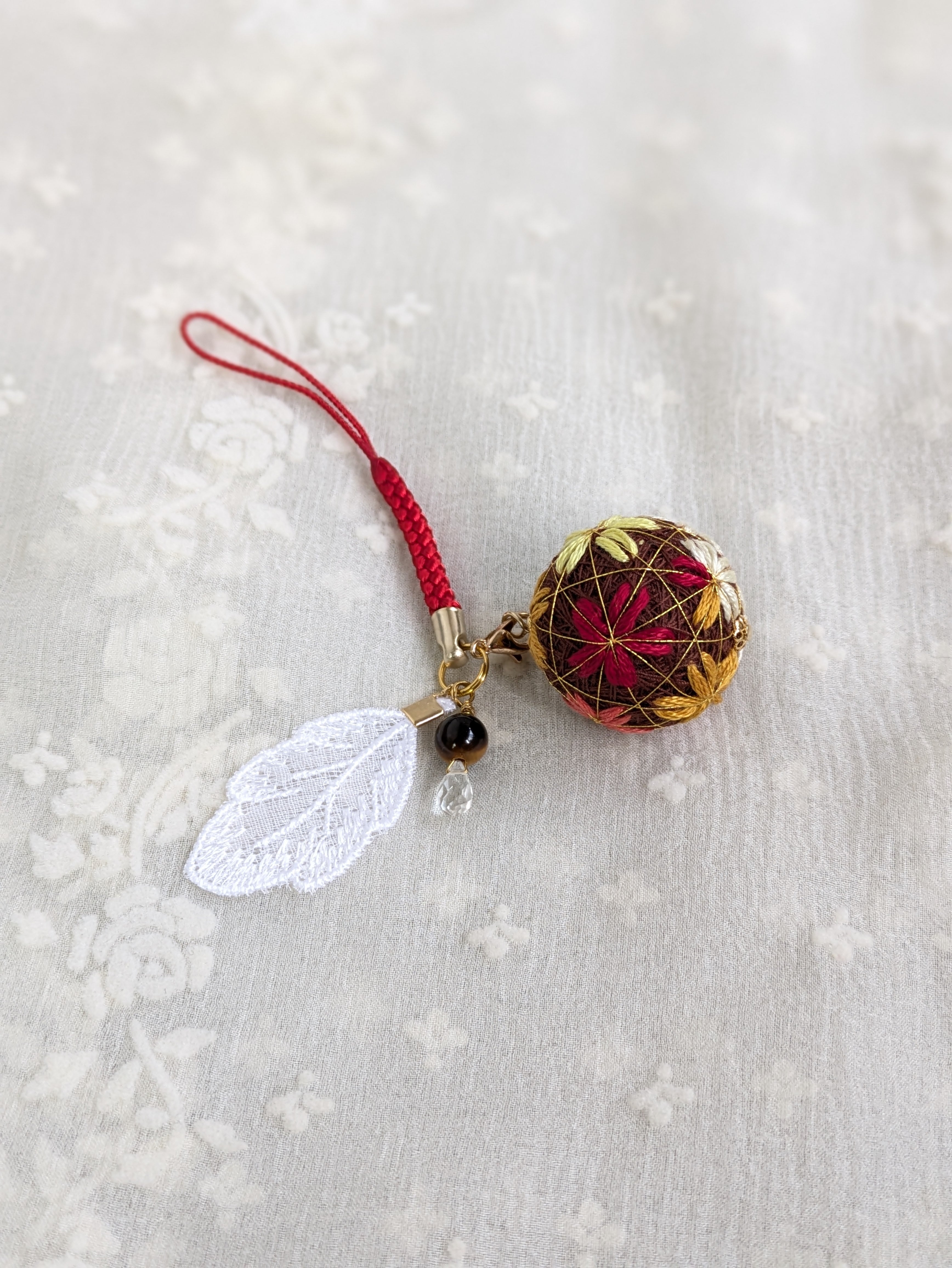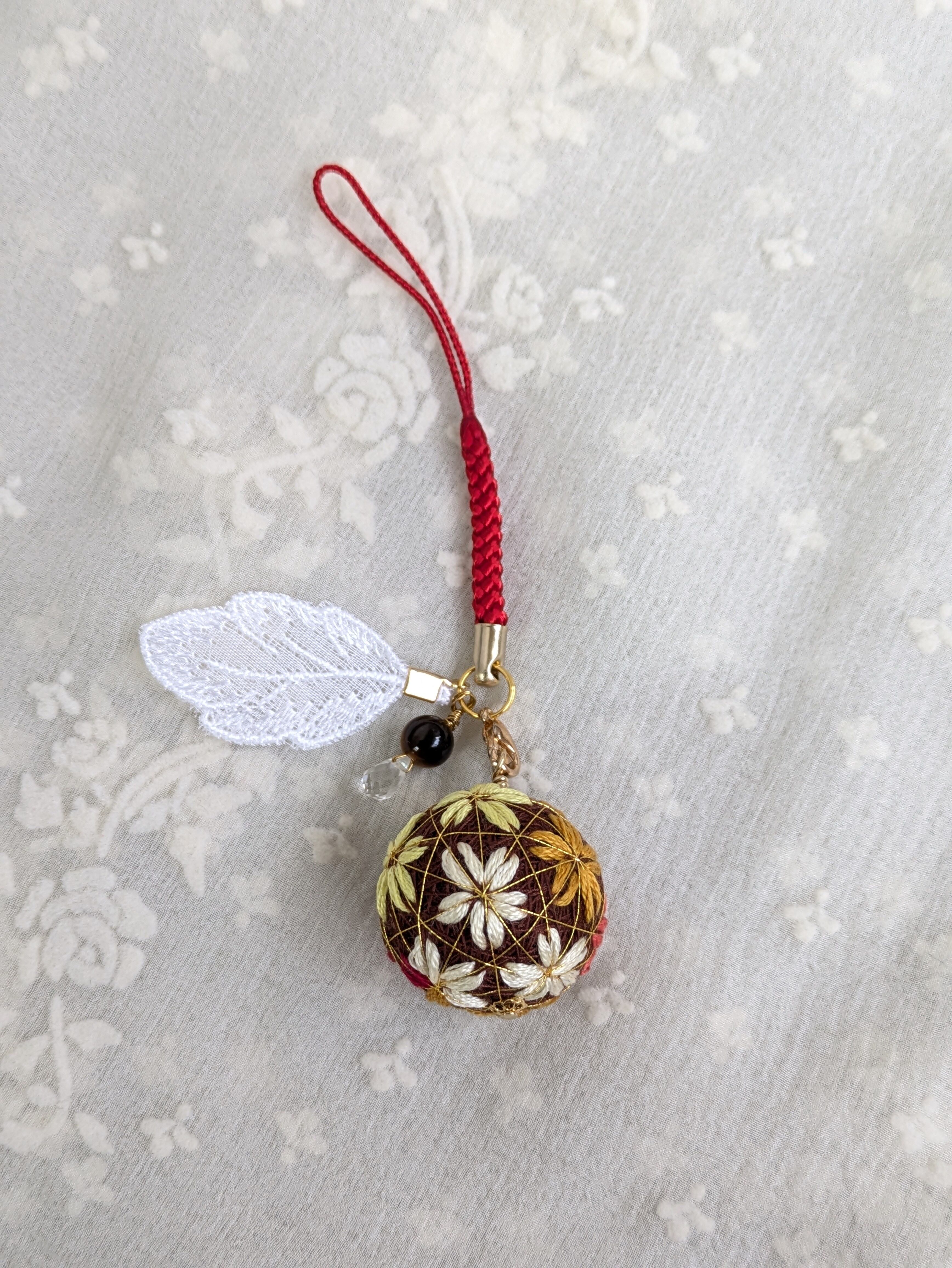 花手鞠はカニカンから取り外して、お手持ちのチェーンに通したら、ペンダントトップにもなります。