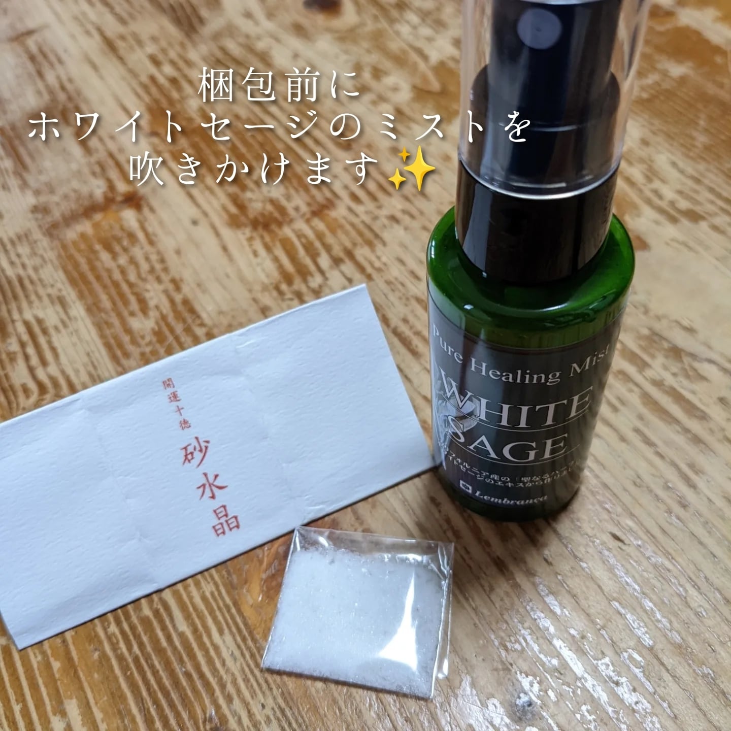 ⑦梱包前にホワイトセージのミストを吹きかけて、邪気払い。