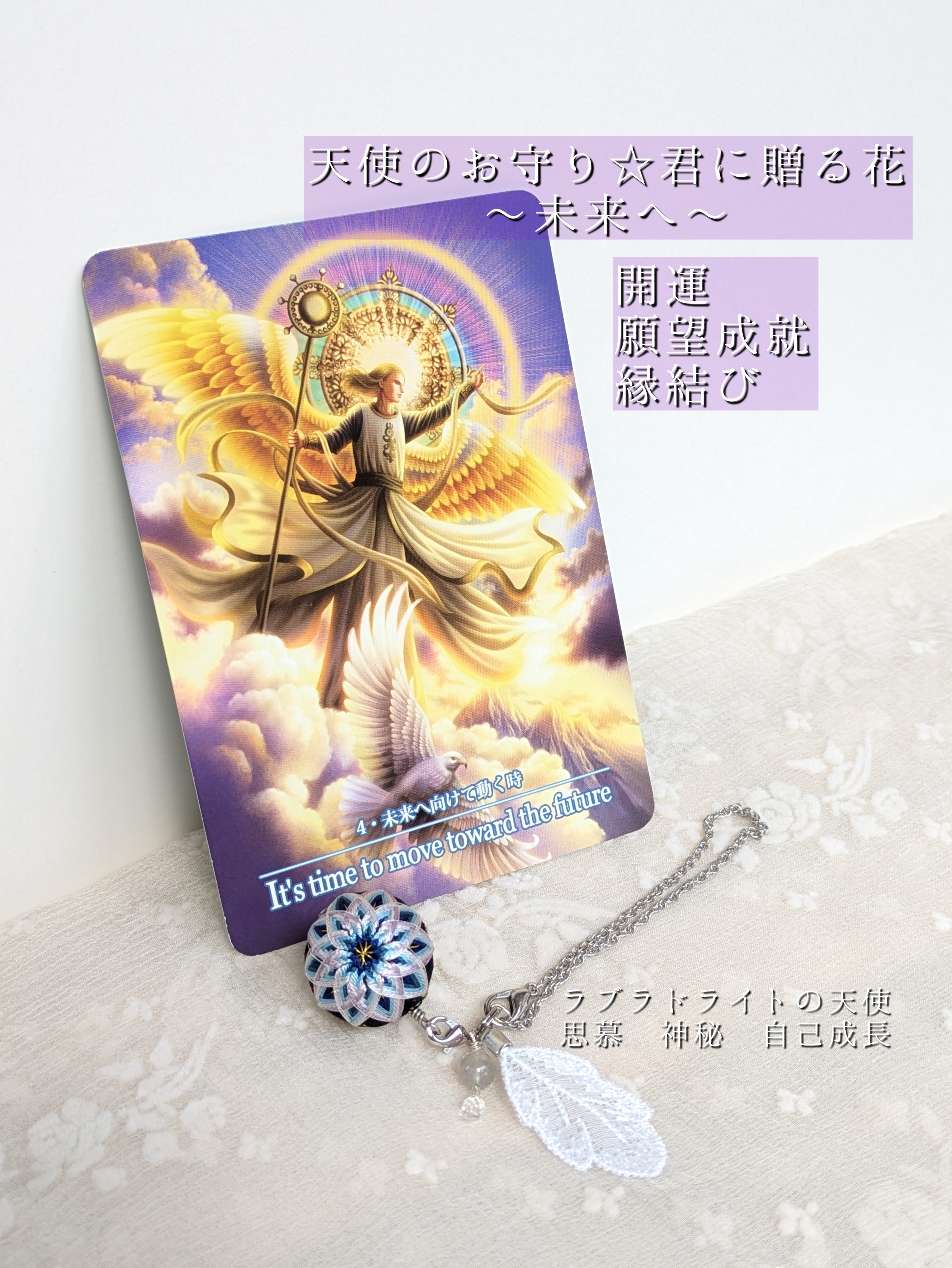 ラブラドライトの天使のお守り バッグチャーム【君に贈る花〜未来へ】魂を導くパワーストーン