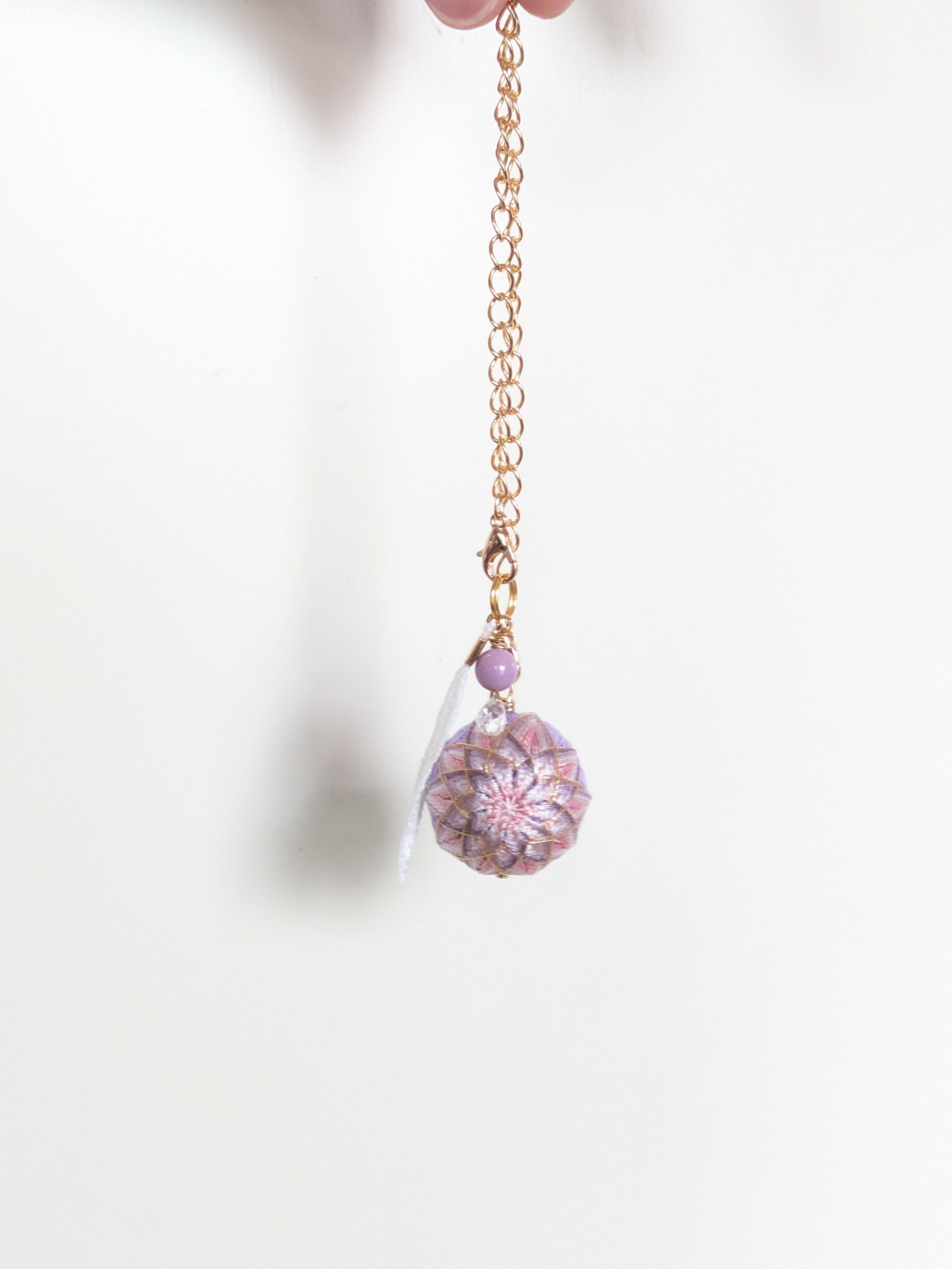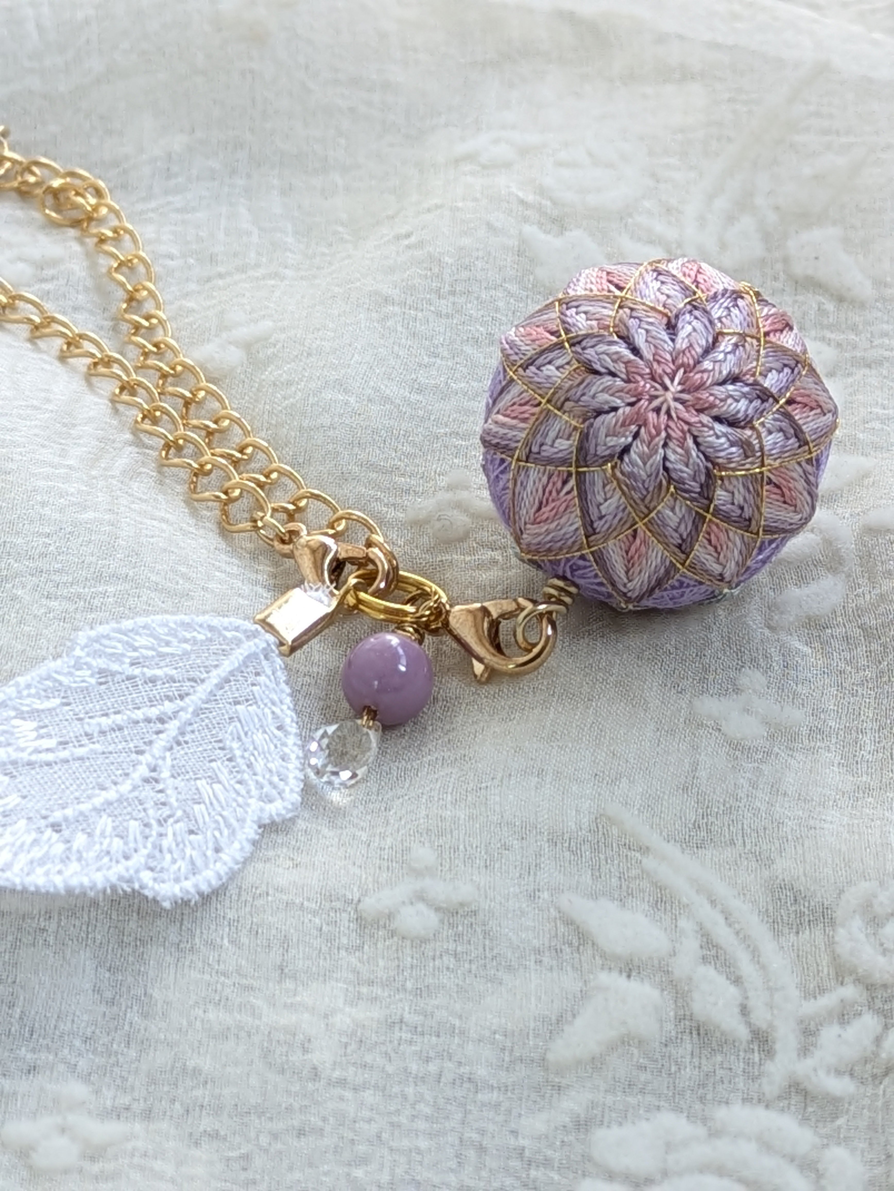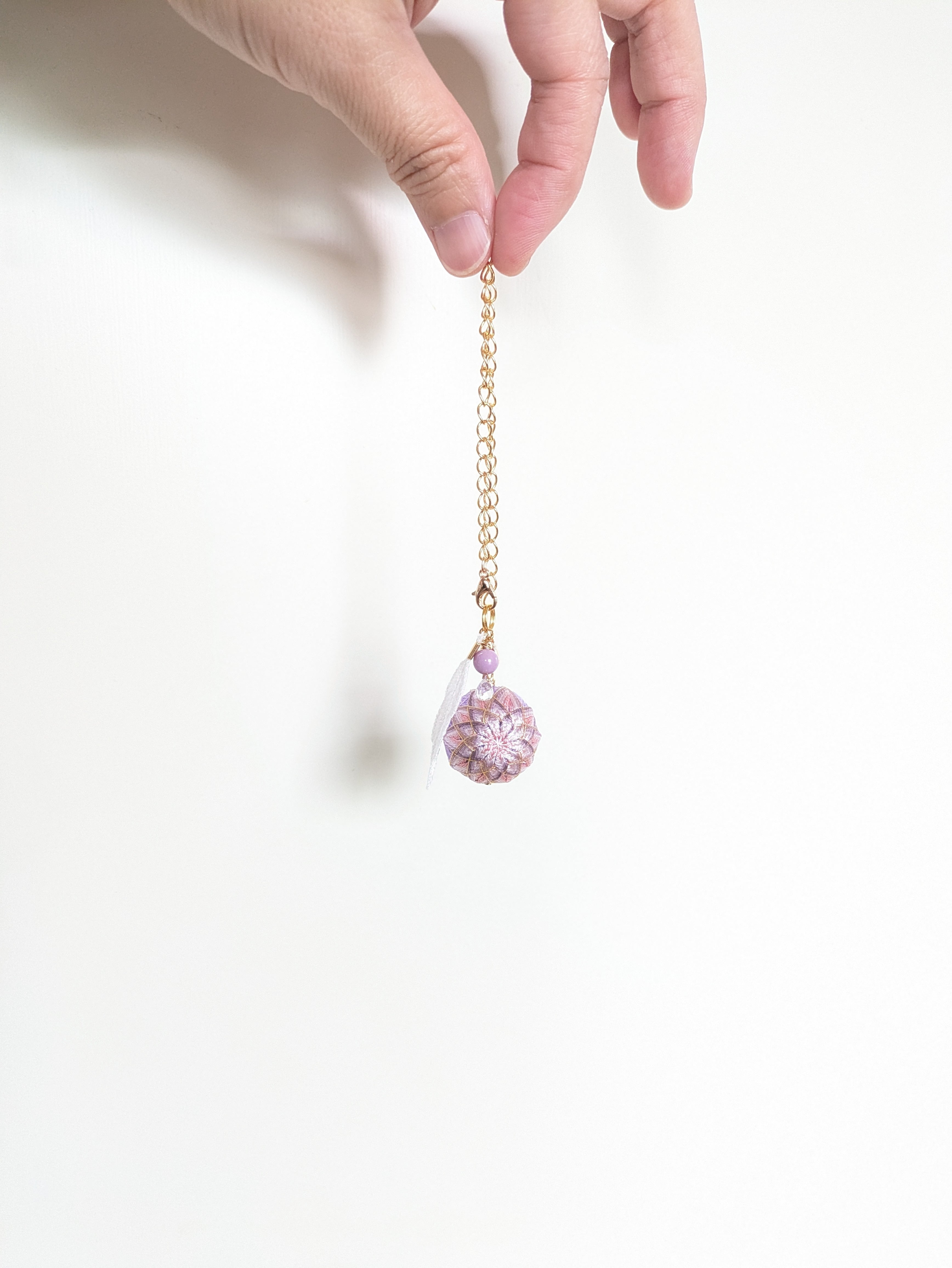 ②花手鞠はカニカンから取り外し可能。お手持ちの紐に通せばペンダントとしてお楽しみいただけます。