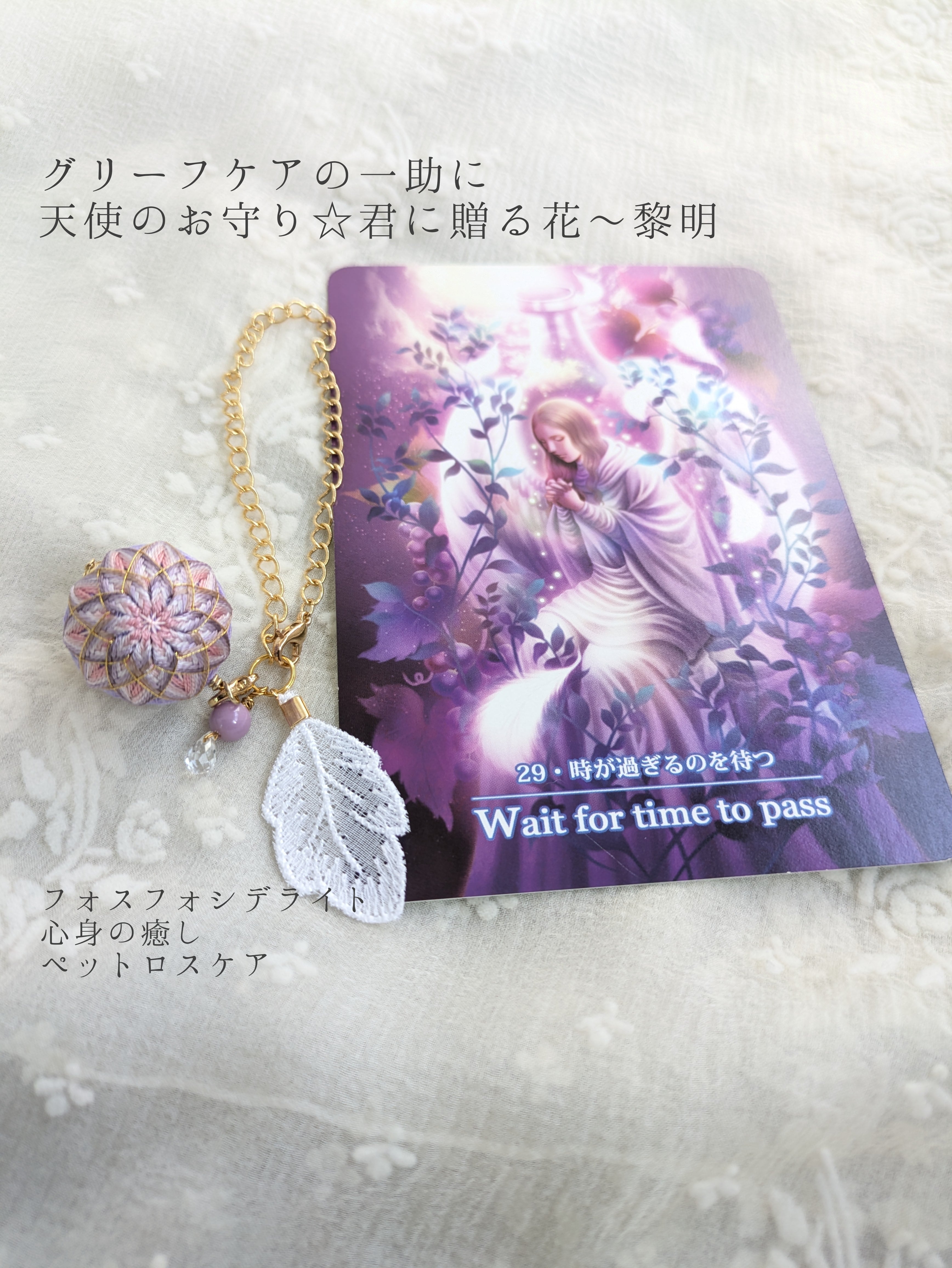 フォスフォシデライトの天使のお守り バッグチャーム【君に贈る花〜黎明】哀しみを癒すパワーストーン 心願成就 グリーフケア