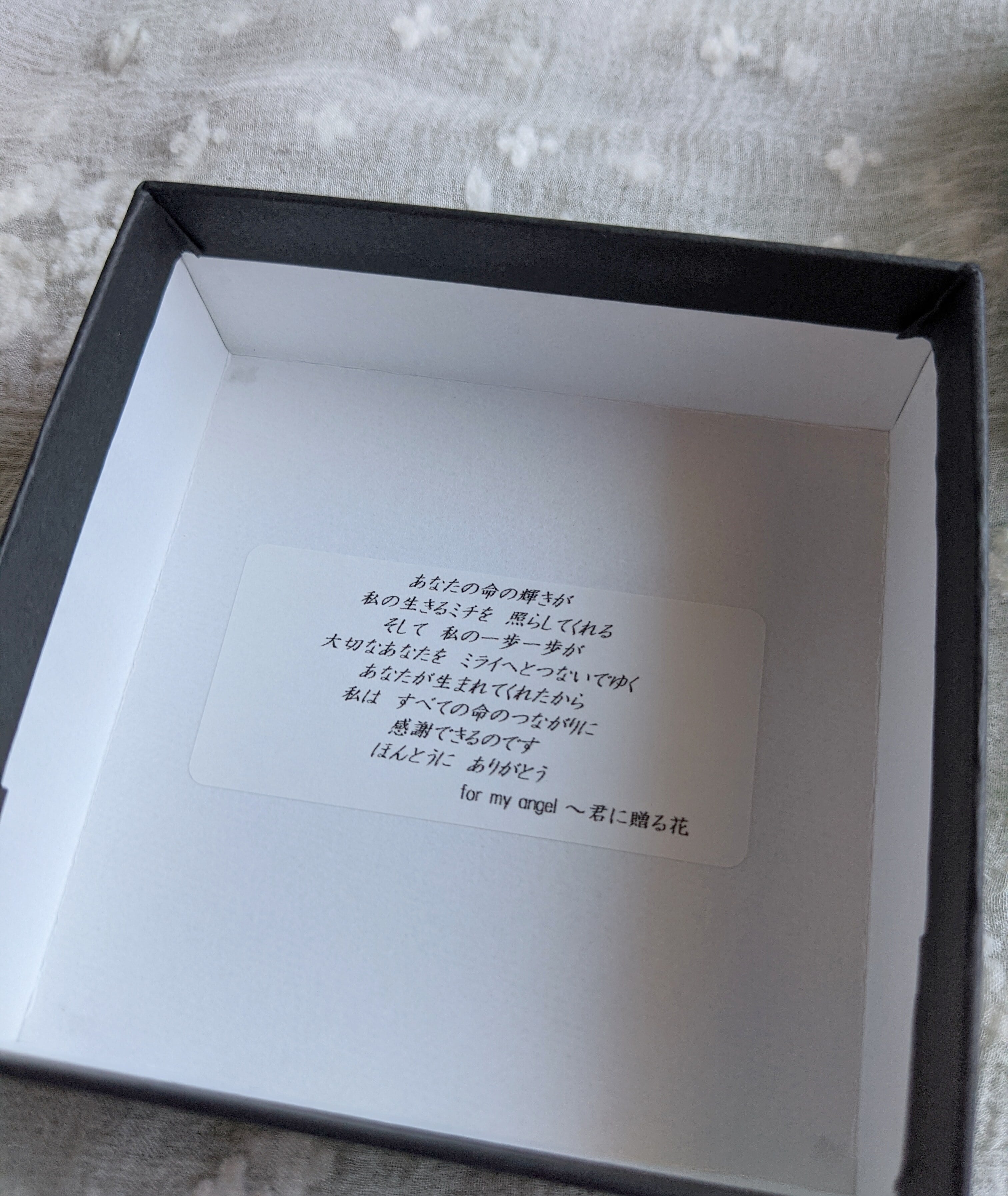 黒のbox、メッセージ付き。