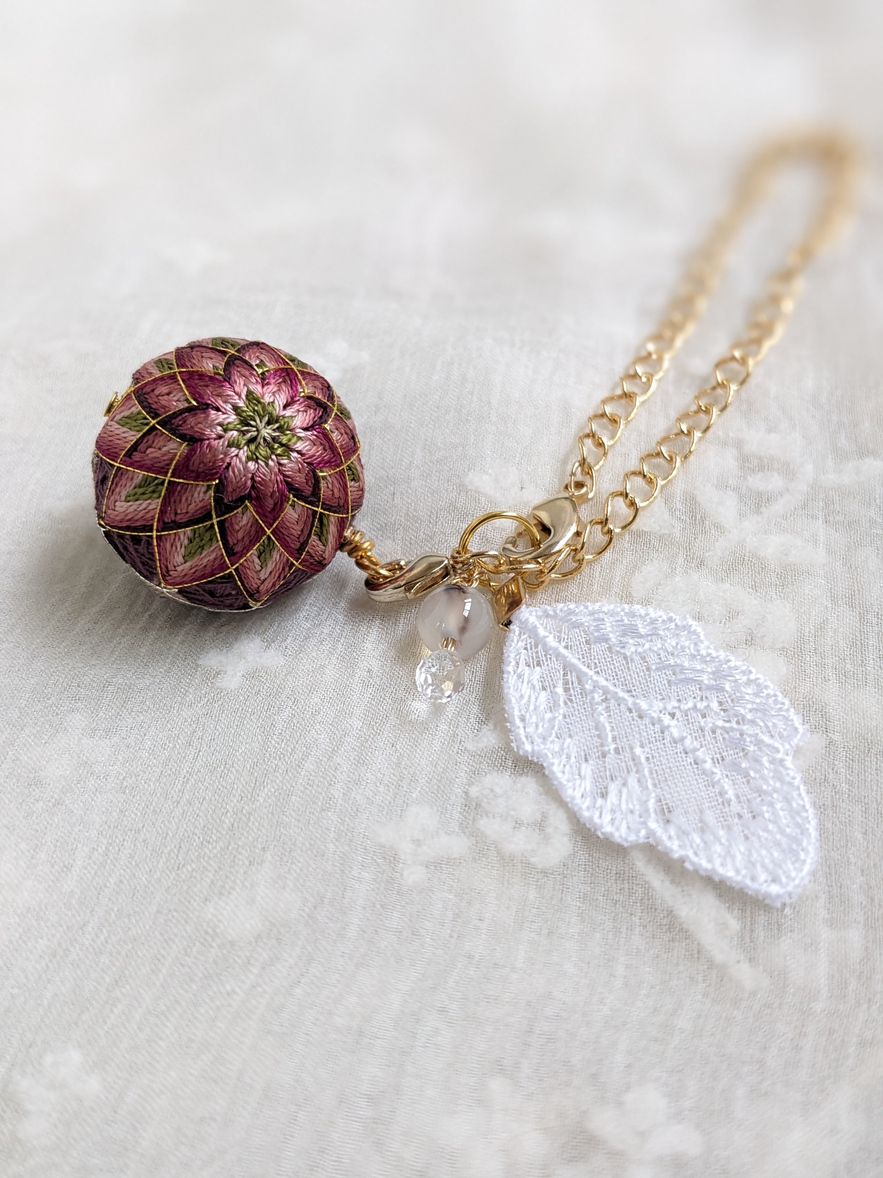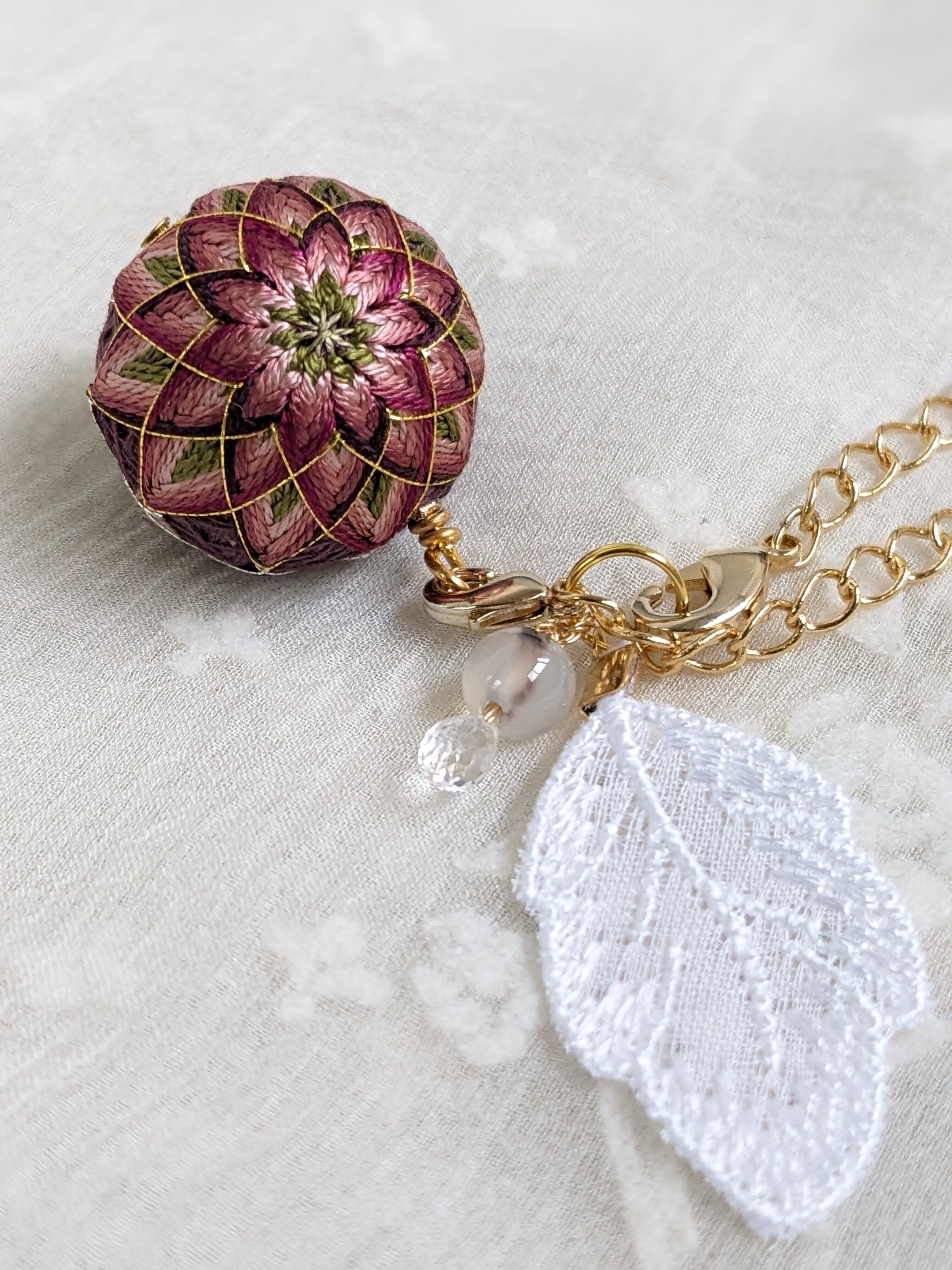 伝統工芸 手鞠 てまり 刺繍 花柄 花 フラワー 一点物 レース 天使 フォーマル 結婚式 卒園式 卒業式 入園式 入学式 着物 浴衣 カジュアル プレゼント ギフト 母の日 誕生日 お守り 敬老の日 シニア アクセサリー ストラップ 根付け クリスマス スピリチュアル 開運