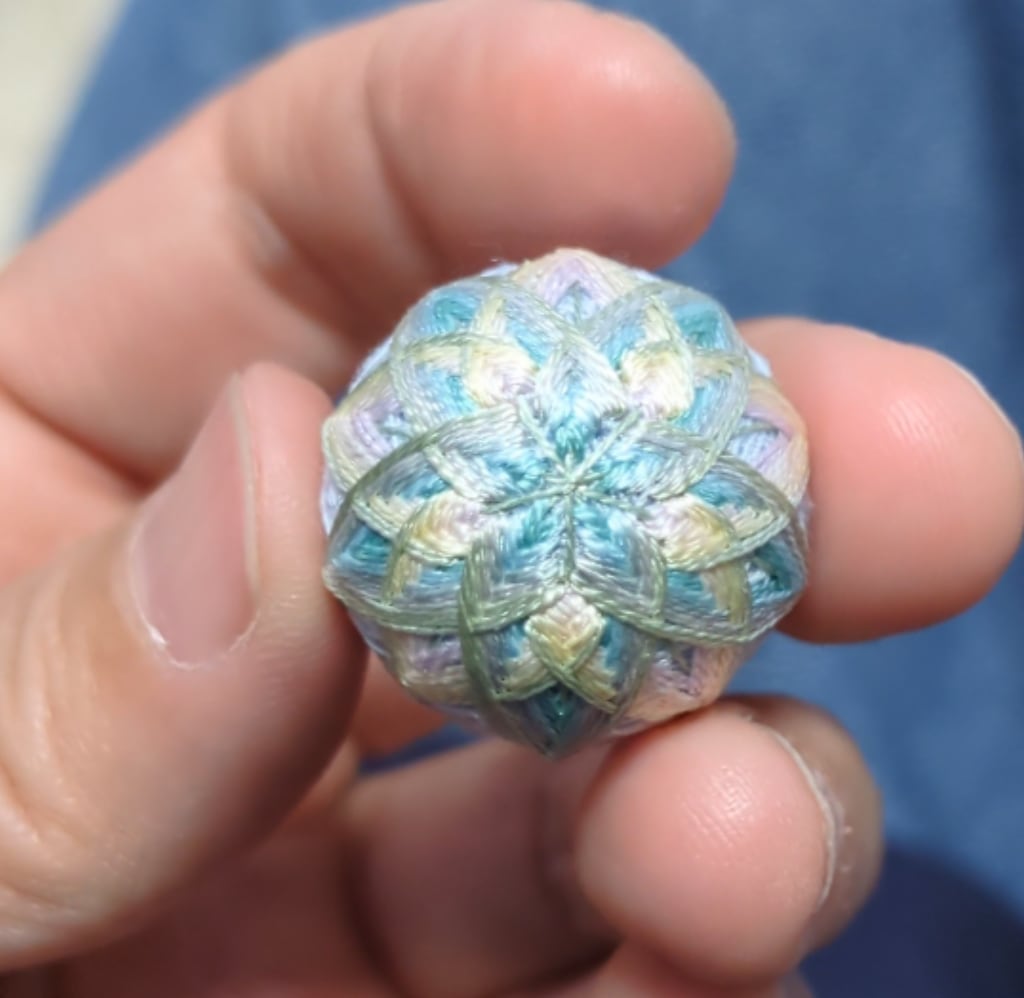 3. 手毬の中心には砂水晶と宮島大聖院のお守り砂を入れ、内側からも浄化とパワーチャージを施します。