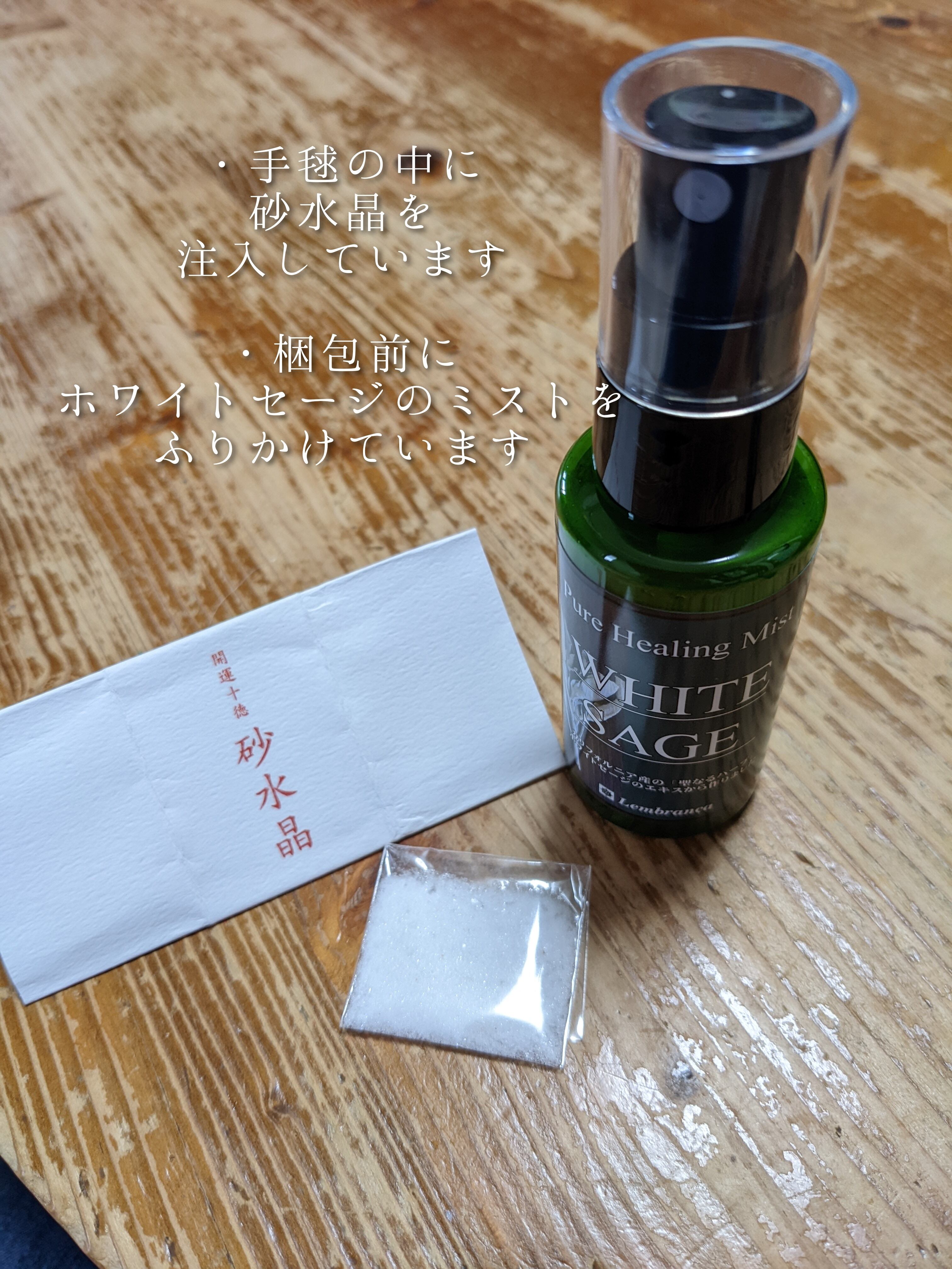 ③てまりの中心には、砂水晶&宮島大聖院さんの守り砂を入れて、内側からも浄化&パワーチャージ