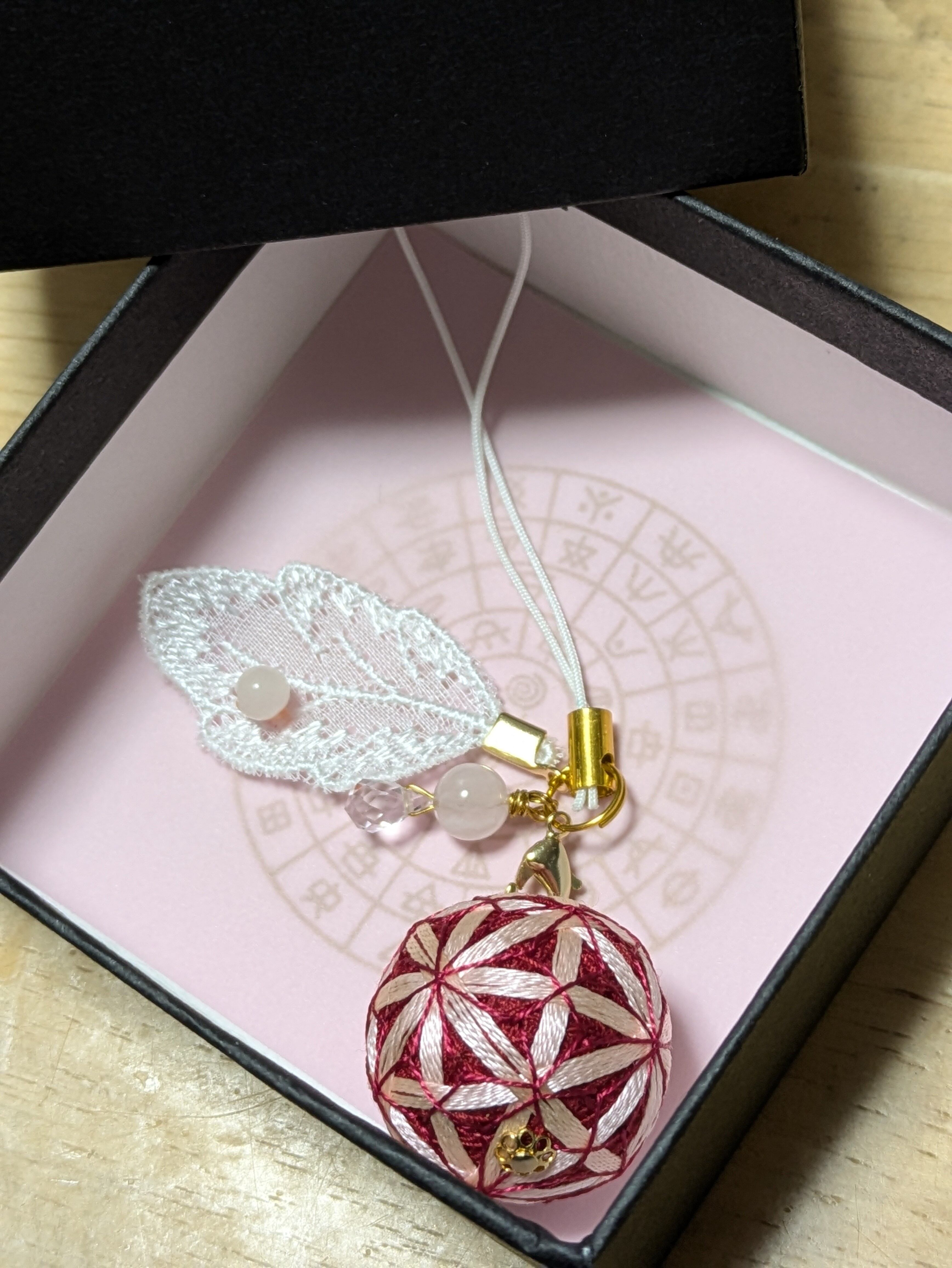 伝統工芸 手鞠 てまり 刺繍 麻の葉 一点物 レース 天使 フォーマル 結婚式 卒園式 卒業式 入園式 入学式 着物 浴衣 カジュアル プレゼント ギフト 母の日 誕生日 お守り レッド 新年 正月 初詣 新春 開運 スピリチュアル 厄除け 魔よけ フラワーオブライフ 縁結び 縁切り