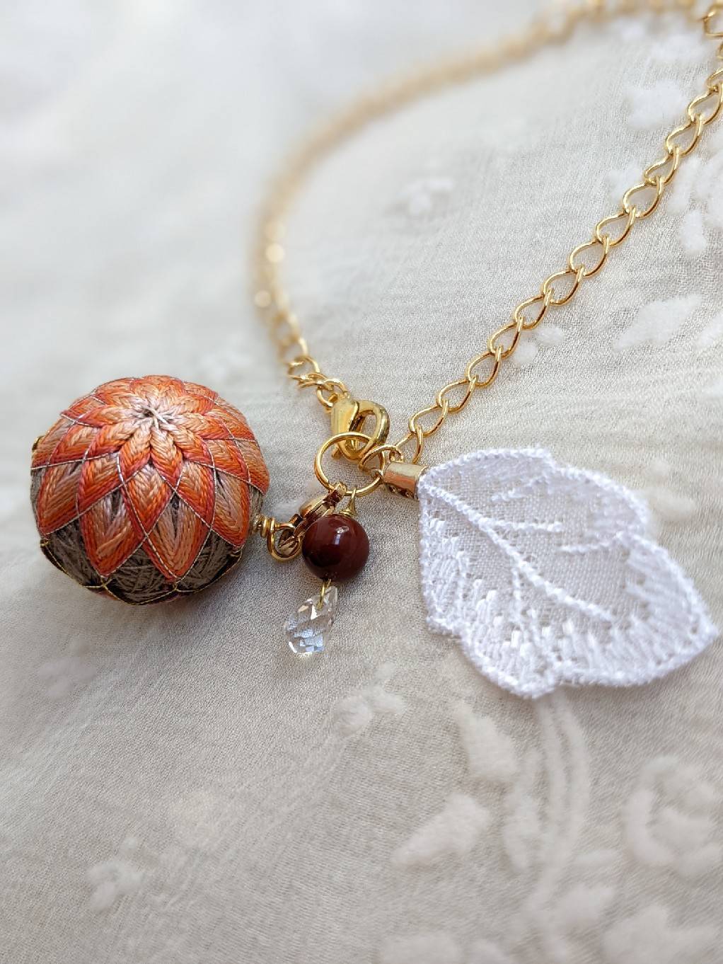 ②花手鞠はカニカンから取り外し可能。お手持ちの紐に通せばペンダントとしてお楽しみいただけます。