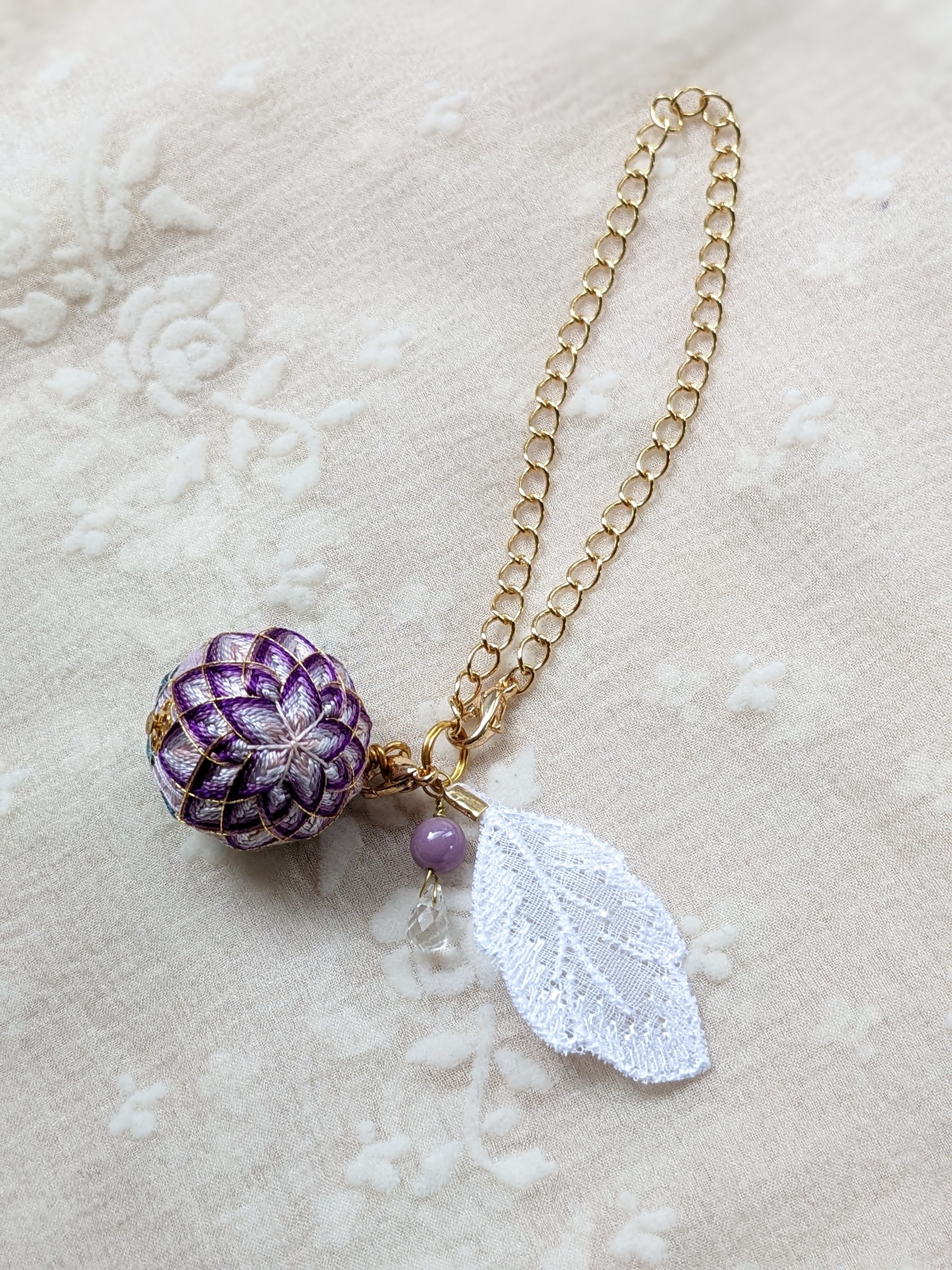 伝統工芸 手鞠 てまり 刺繍 花柄 花 フラワー 一点物 レース 天使 フォーマル 結婚式 卒園式 卒業式 入園式 入学式 着物 浴衣 カジュアル プレゼント ギフト 母の日 誕生日 お守り 敬老の日 シニア アクセサリー ストラップ 根付け クリスマス スピリチュアル 開運