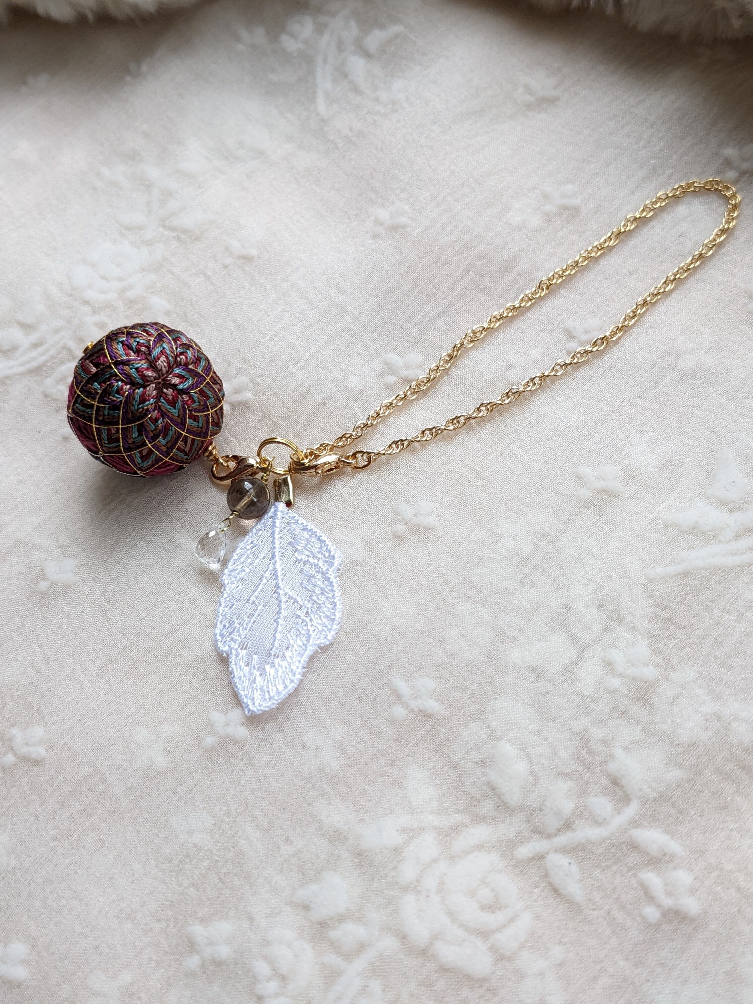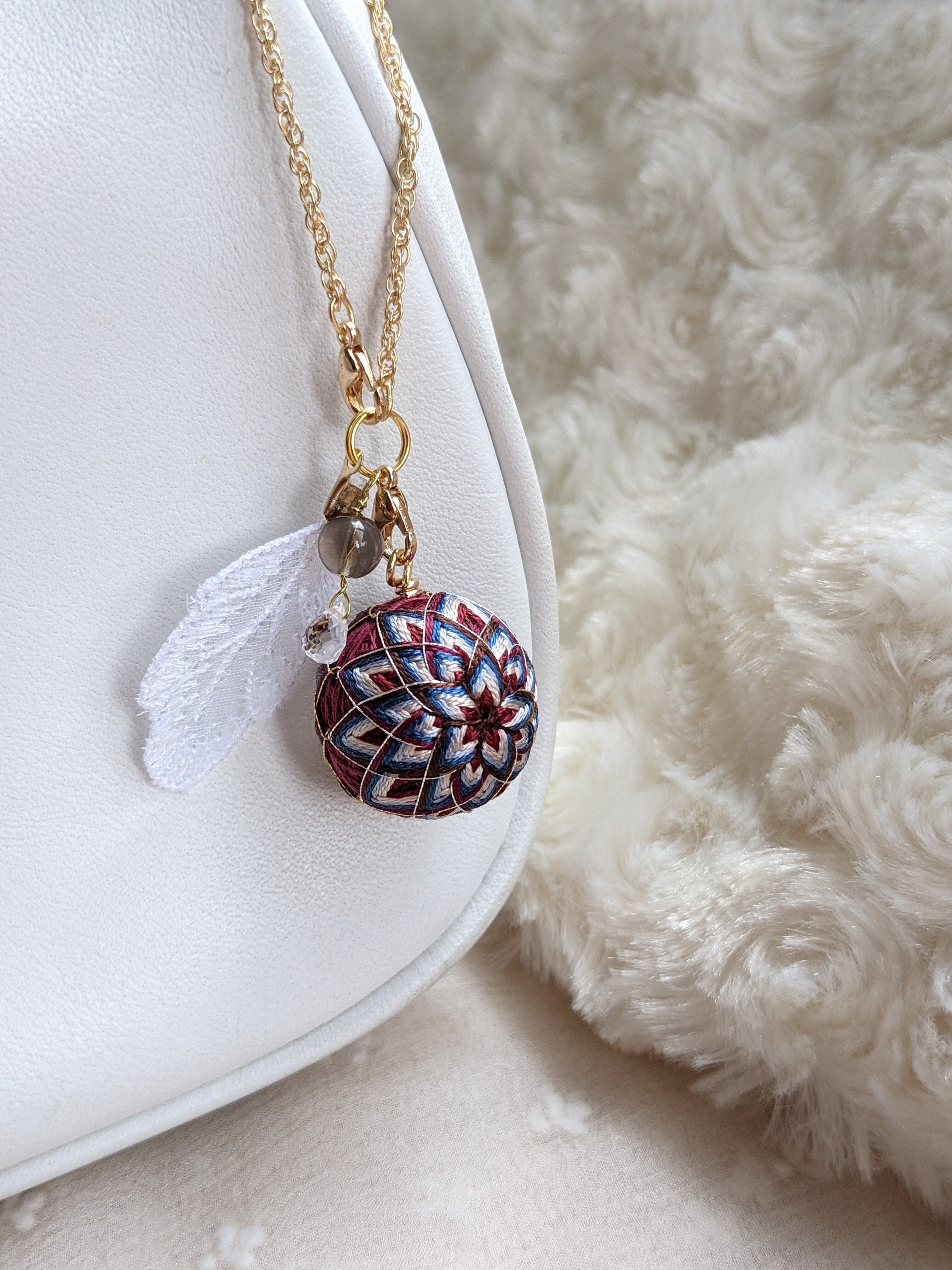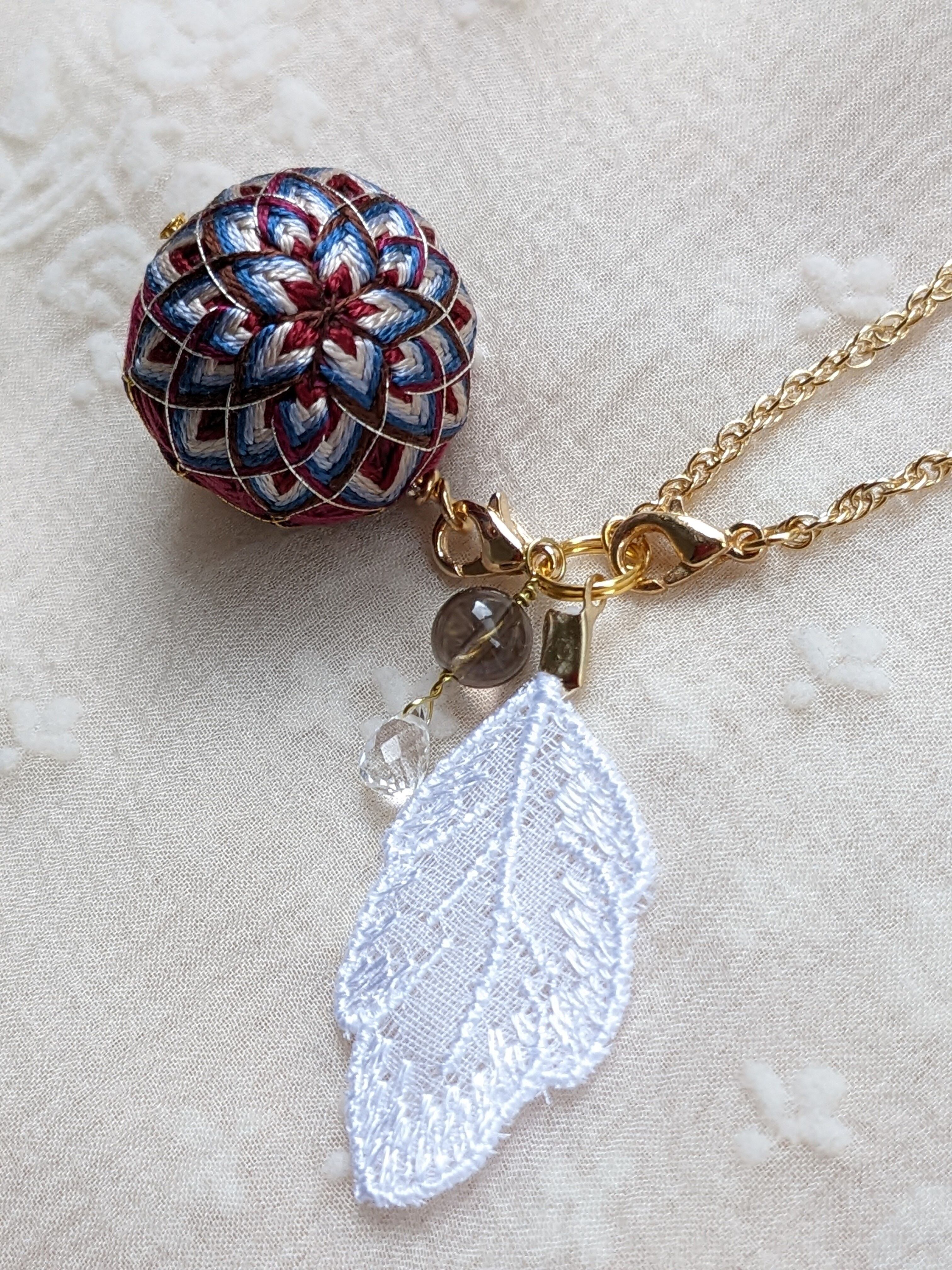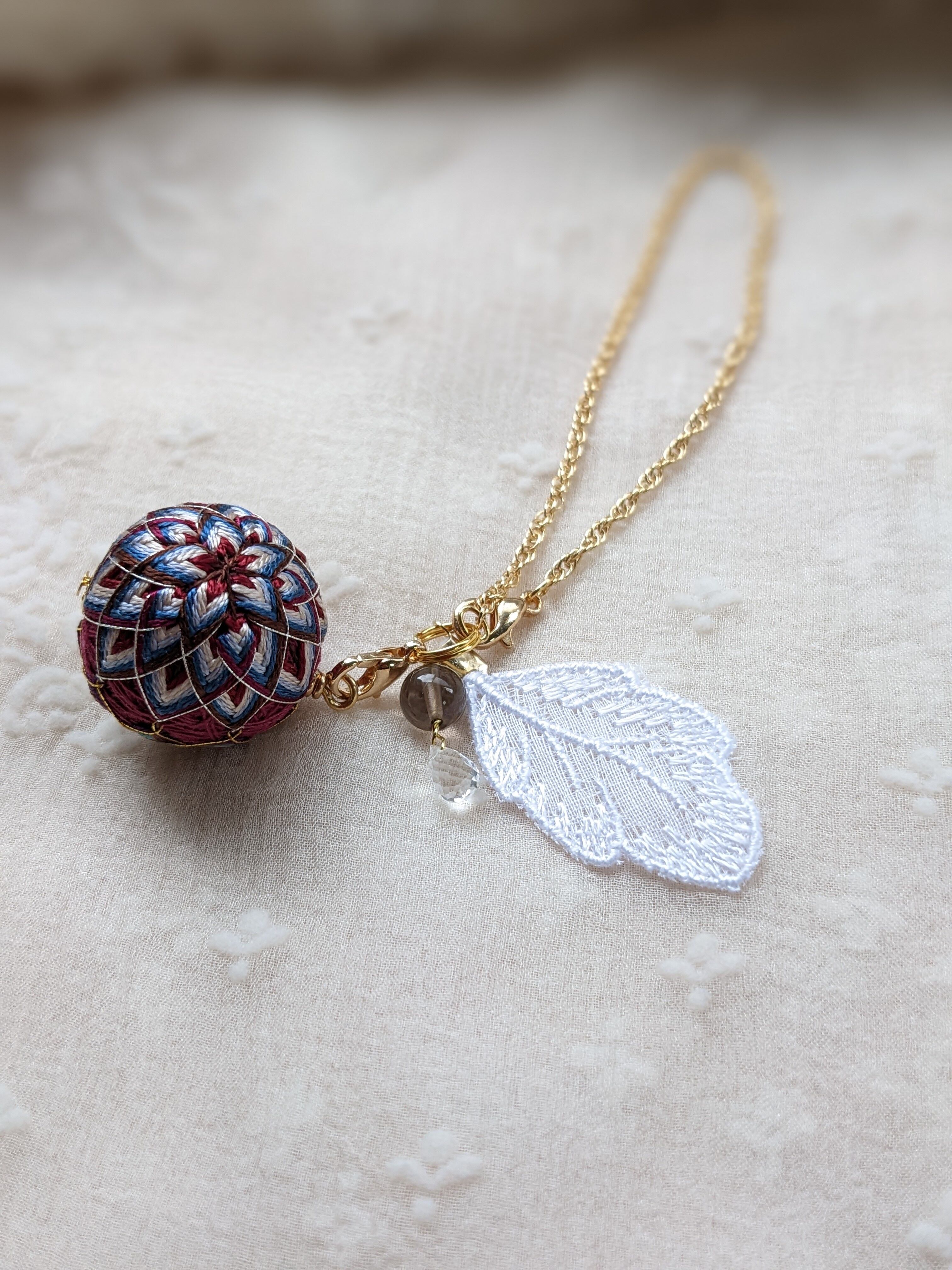 ②花手鞠はカニカンから取り外し可能。お手持ちの紐に通せばペンダントとしてお楽しみいただけます。
