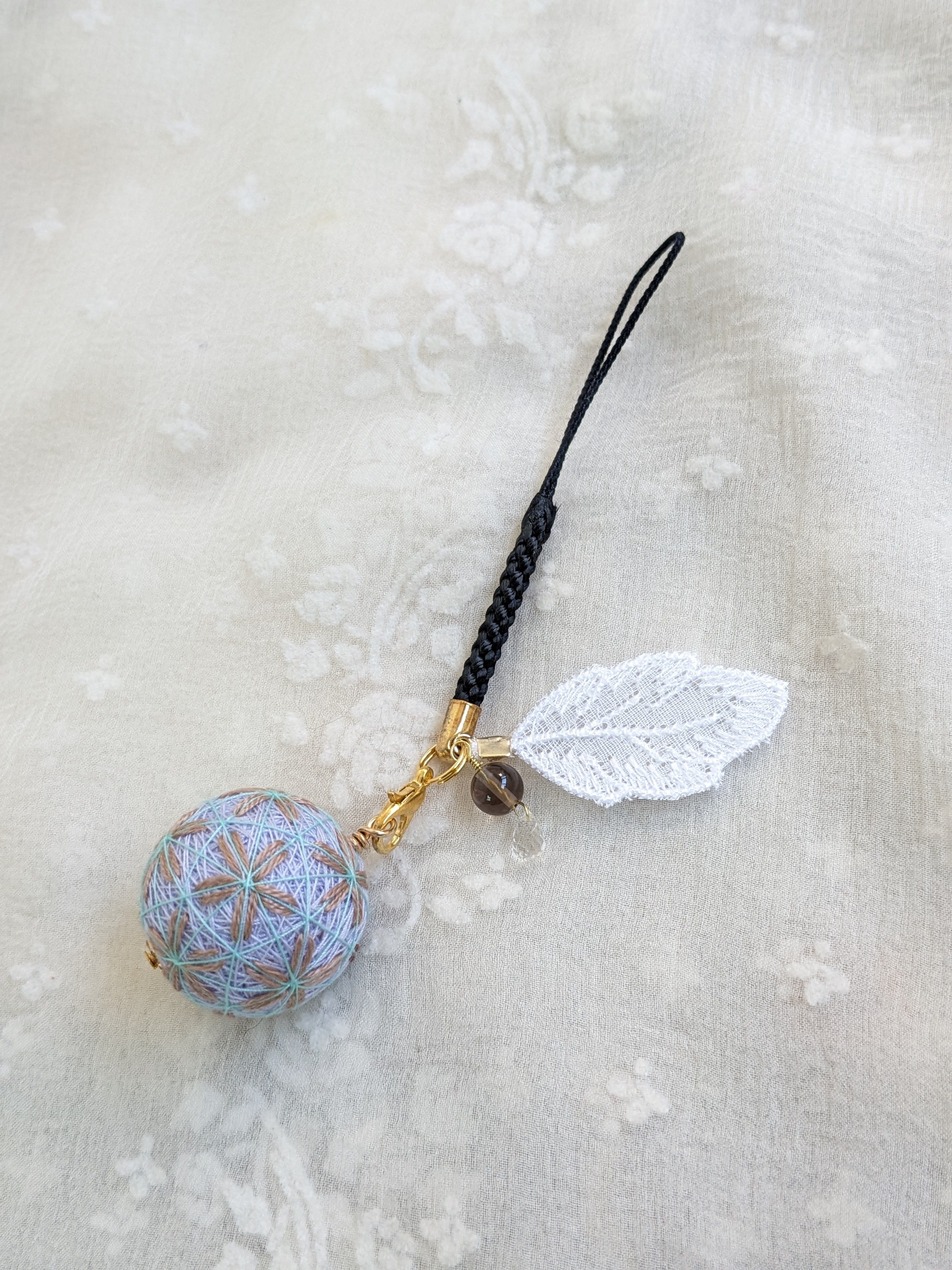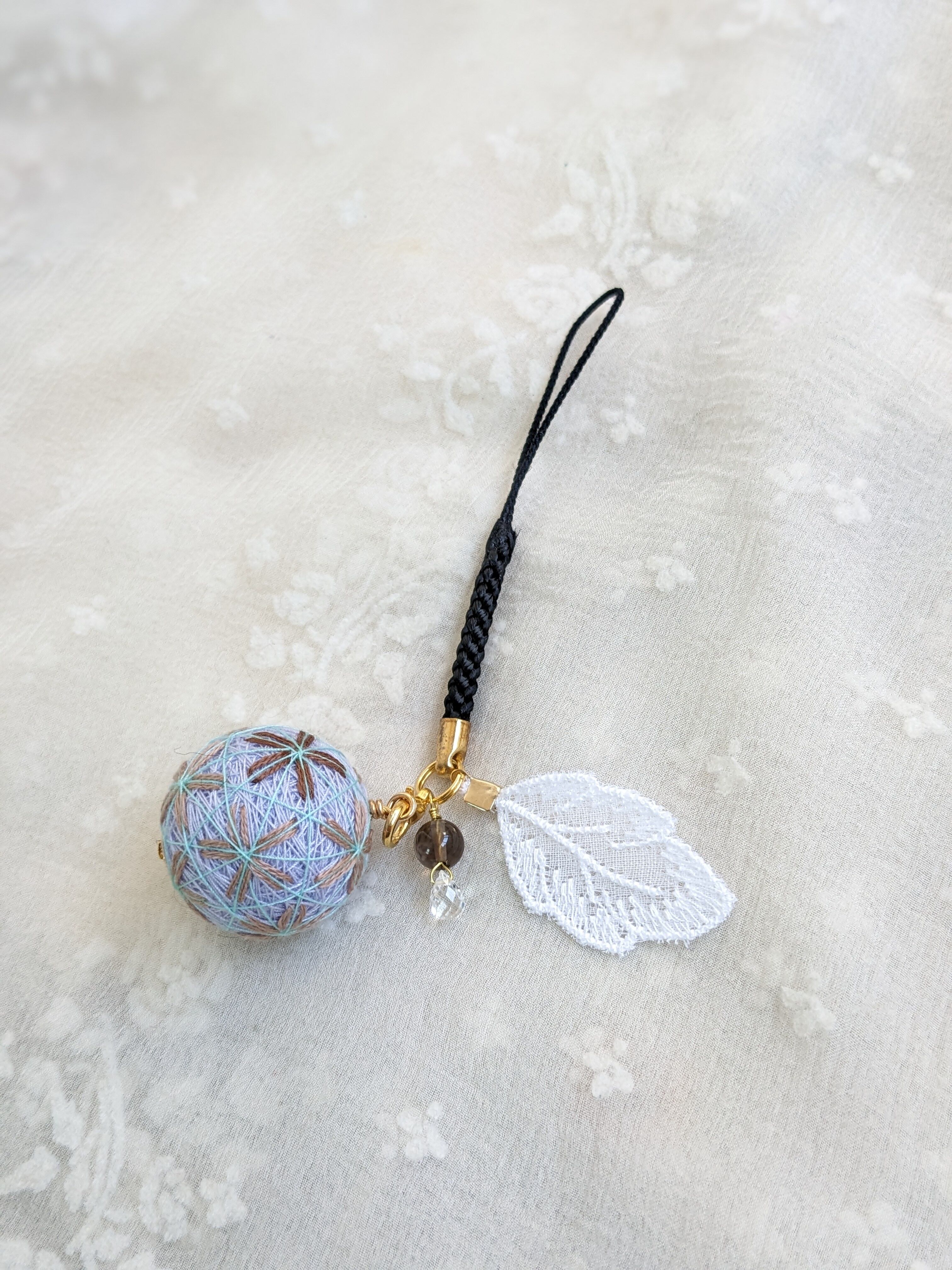 【行動の星】 グラウディングのパワーストーン スモーキークォーツ 天使のお守り☆天国のお花畑 伝統工芸 手鞠 根付け ストラップ ブラウン 【オプション☆天のお告げ】