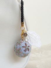 伝統工芸 手鞠 てまり 刺繍 花柄 花 フラワー 一点物 レース 天使 フォーマル 結婚式 卒園式 卒業式 入園式 入学式 着物 浴衣 カジュアル プレゼント ギフト 母の日 誕生日 お守り 帯飾り 根付け パープル イエロー