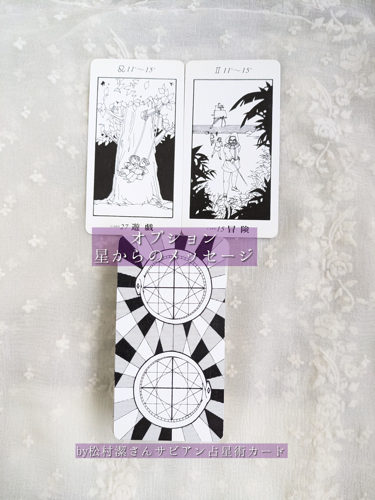 ⑥【天のお告げ】願い事に対してのアドバイスを。複数のカード(スペシャルカードも!)から、あなたへのアドバイスメッセージをお伝えします。願いを叶える秘訣は覚悟を保つこと。心の持ち方が定まります。