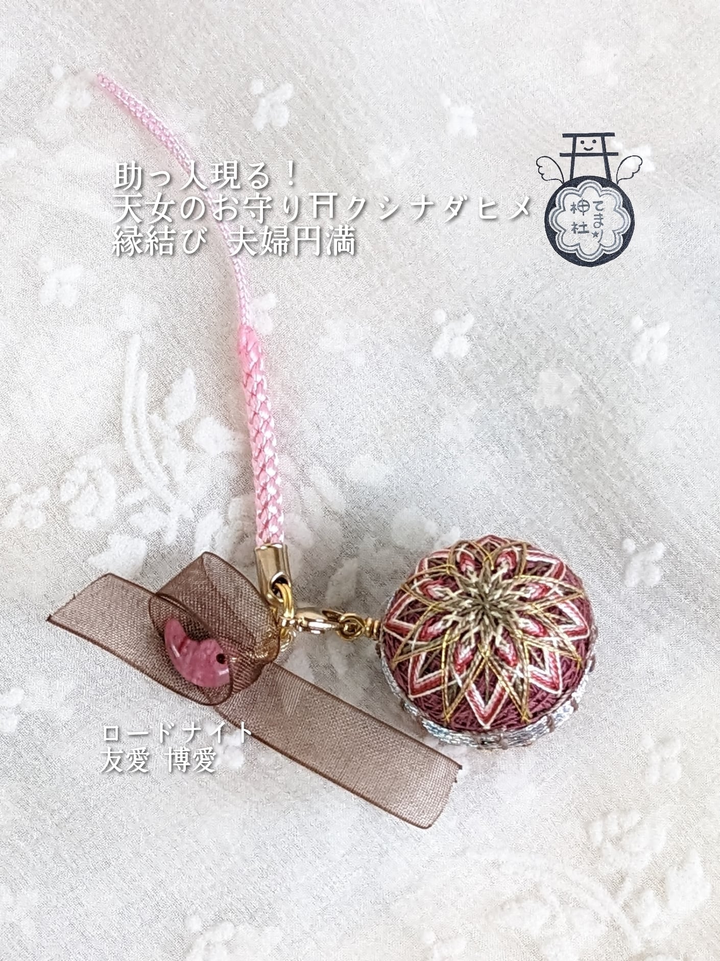 助っ人現る!問題解決!【天女のお守り⛩クシナダヒメ】高波動 愛情のパワーストーン ロードナイト 縁結び ストラップ カードリーディングで天のお告げつき 代理参拝