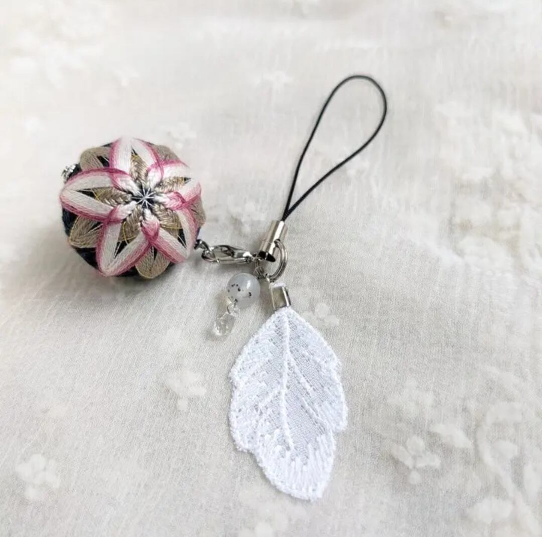 夜桜のお守り☆天使とお花見〜あなたの願い事にあった天使がサポート 夜桜手鞠のお守りストラップ 天使からのメッセージつき 卒業祝い 入学祝い