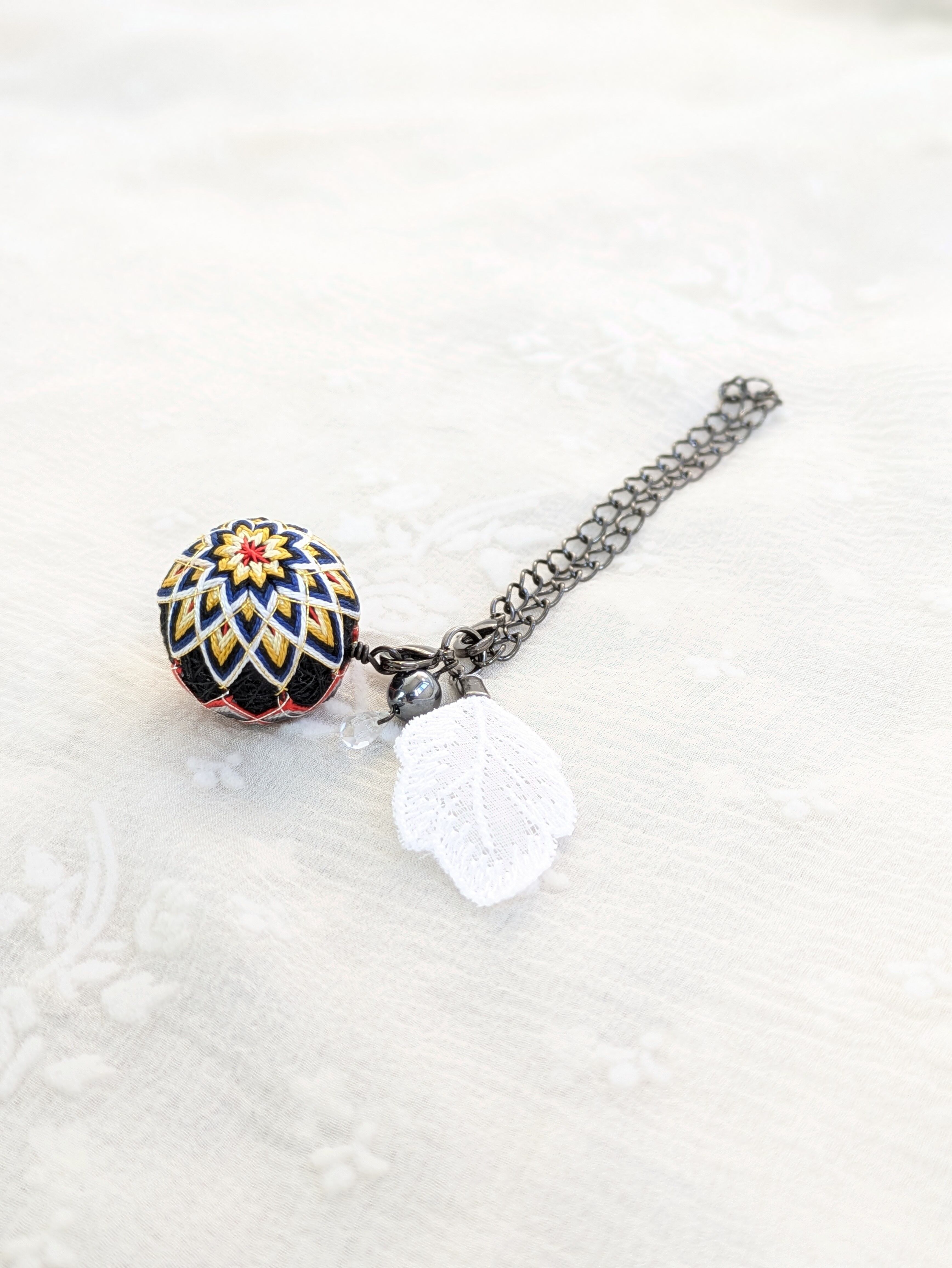 ②花手鞠はカニカンから取り外し可能。お手持ちの紐に通せばペンダントとしてお楽しみいただけます。