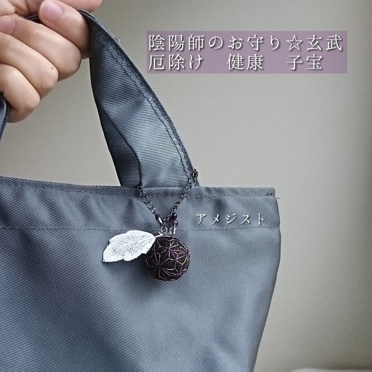 厄除け・健康祈願・子宝のお守りバッグチャーム|陰陽五行|パワーストーン【陰陽師のお守り☆玄武】アメジスト